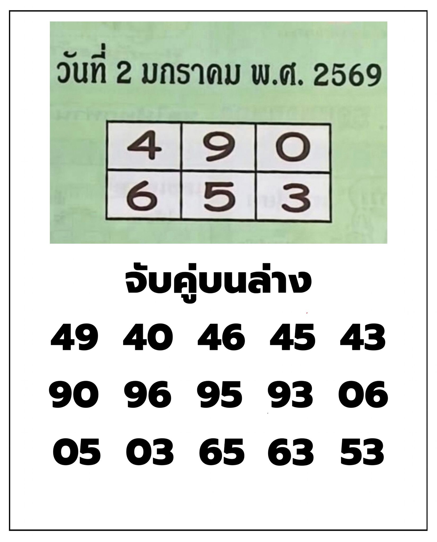 งวดนี้อัพเดทจาก นิตยสารรวมหวยซองปกเขียว คู่มือเสี่ยงโชคสลากกินแบ่งรัฐบาลงวดนี้ ที่มาพร้อมชุดตารางเลขเด่น 6 ตัว จับคู่เลข 3 ตัว และ 2 ตัว บน-ล่าง วิเคราะห์