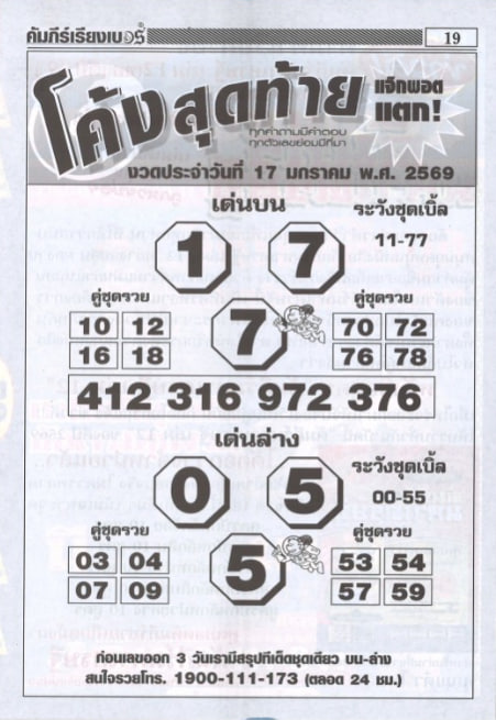 มาตาม! หวยซองโค้งสุดท้าย 17/1/2569